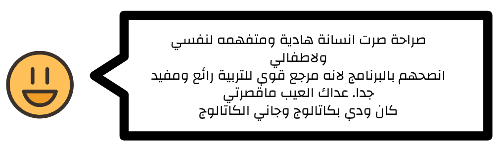 كنت أشوف حسابات تربية وبعضها أحسها ناقصة شرح أو مثالية ومع اني شفت بعض النصائح الي تشبه البرنامج لكن ماكنت أعرف أطبق أبد كنت أحسه كله صعب. أما معاك وطريقة توصيلك للمعلومات واستراتيجية البرنامج مو هيييينة كيف تخليك تطبقي هالكلام بلطف وبنفسك. حالياً أسمع أطفالي وألعب معاهم بحب وأجيب أفكار ولا أستثقل شي عشانهم حرفياً هم أهم شي في حياتي صاروا.